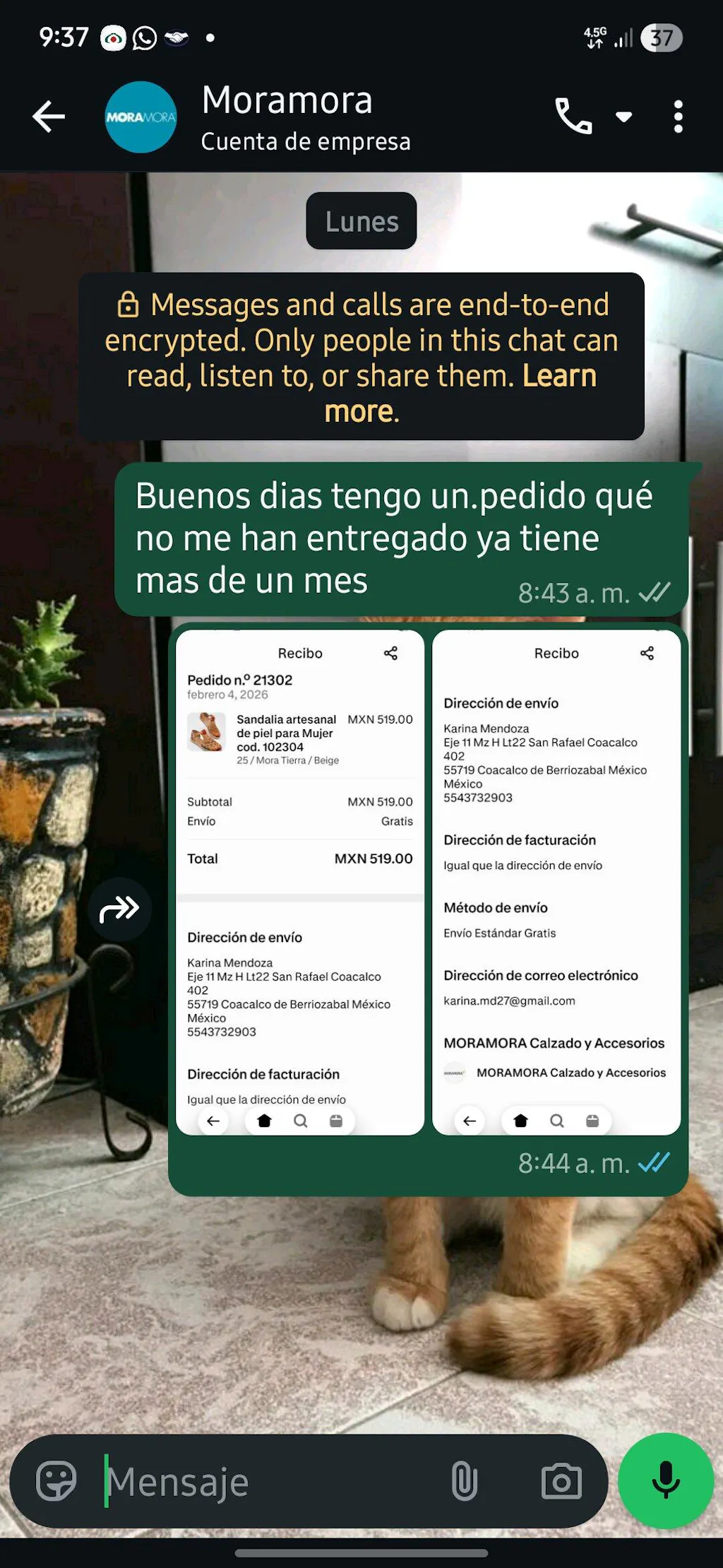AL LLEGAR TU PEDIDO: Para garantizar tu satisfacción, te pedimos que revises tu pedido cuidadosamente al recibirlo. Si encuentras algún problema, dispones de 24 horas a partir de la recepción para notificarnos a través de nuestro correo: hola@tiendamoramora.com o vía telefónica en el 22 21 41 14 08.