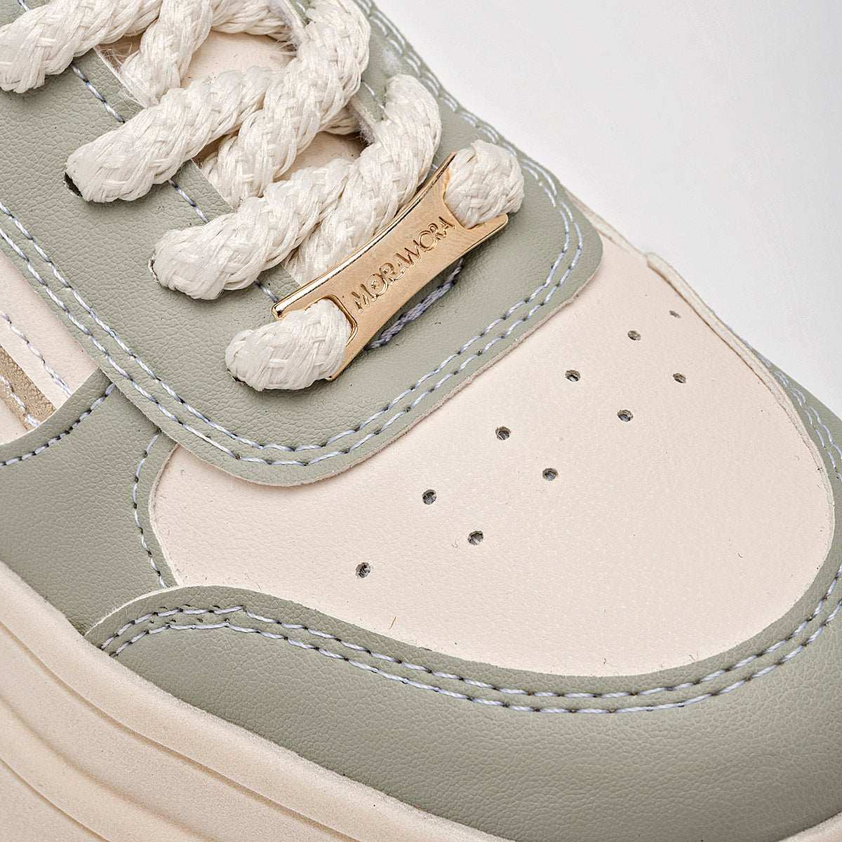 Tenis de moda para mujer, de estilo casual y moderno, en una combinación de colores blanco, beige y verde pastel. Presentan una suela de plataforma de 4 cm y un diseño de múltiples paneles con cordones texturizados. Son ideales para un look cómodo y a la vanguardia. Son ideales para ir a la universidad, hacer recados, o para un día de paseo. Son cómodos y le dan un toque de estilo a cualquier atuendo. Horma normal . "El estilo que te hará destacar. Aporta un toque divertido y único a tus pasos." Corte Sintético, Forro Textil, Suela Sintética